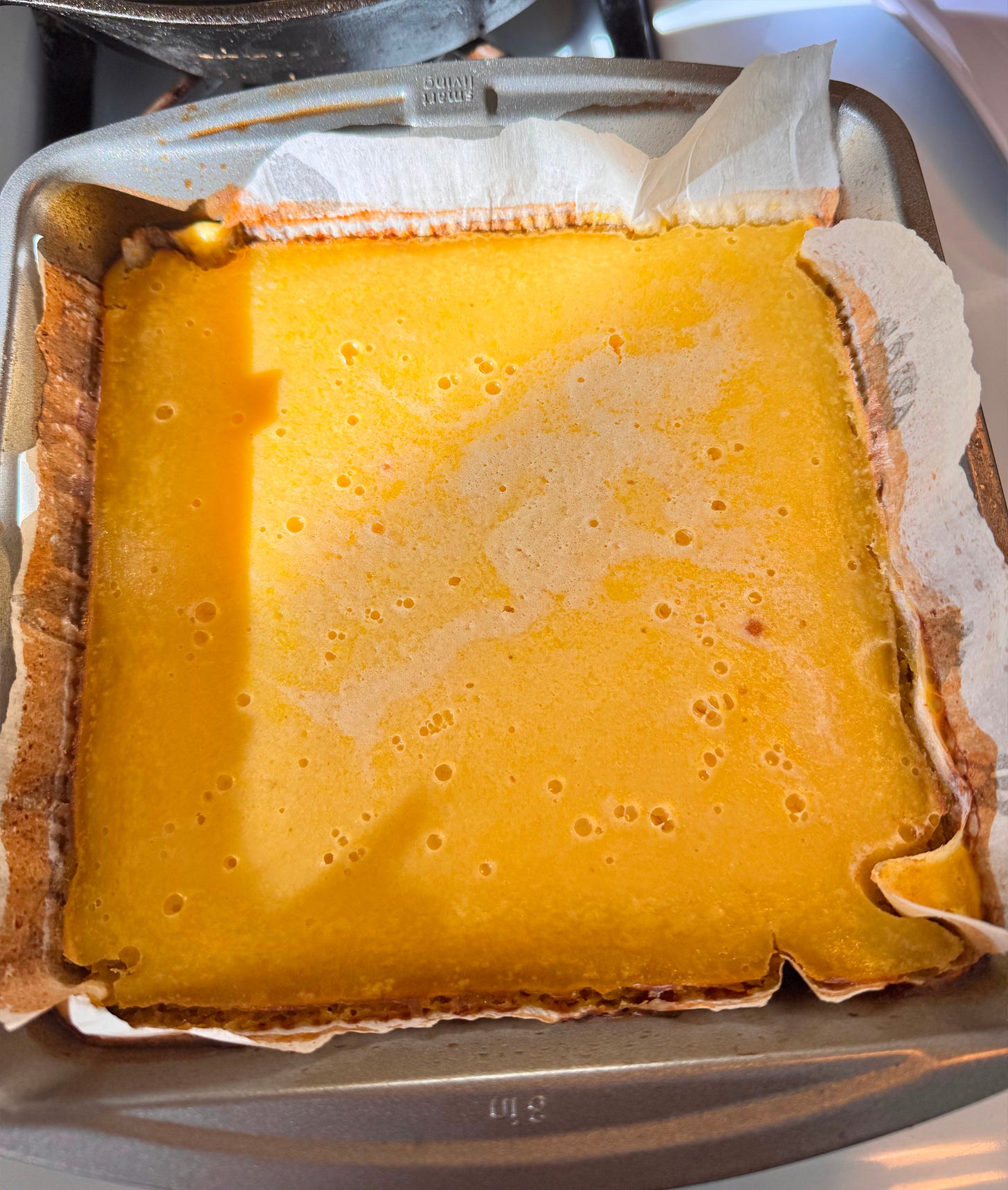 Place the pan back in the oven and bake for 25-30 minutes, or until the curd looks fully set.